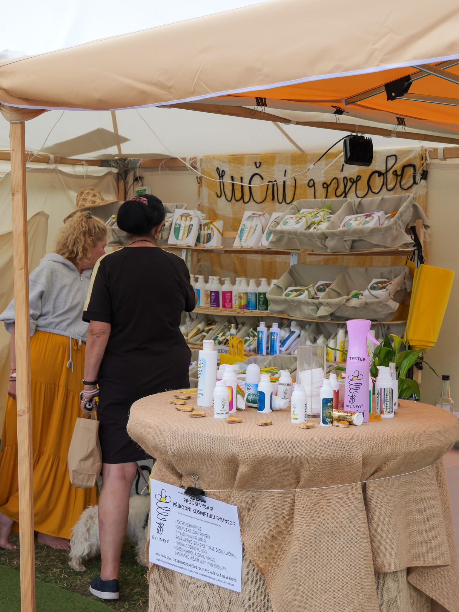 Na návsi se sejde nespočet řemeslníků a umělců – a každý z nich přináší kus své duše. Není to jen o prodeji výrobků, je to o předávání tradice, o rozhovorech s návštěvníky, o tom ukázat, jak se věci dělají ručně, s láskou a trpělivostí. Můžete sledovat, jak řemeslník vytváří před vašima očima něco krásného, jak vysvětluje své umění a jak se mu rozsvítí oči, když vidí zájem – to je k nezaplacení. Můžete si koupit výrobky přímo od výrobců. To platilo i u nás. Vyrábíme produkty z kvalitních surovin s láskou. Rádi jsme vám vše vysvětlili, poradili s pletí, probrali co vás zajímalo. To jste ocenili asi nejvíce. Že jsme se vám věnovali, že jste byli středem vesmíru a my jsme tu byli pro vás. I proto byl tento jarmark velmi úspěšný.